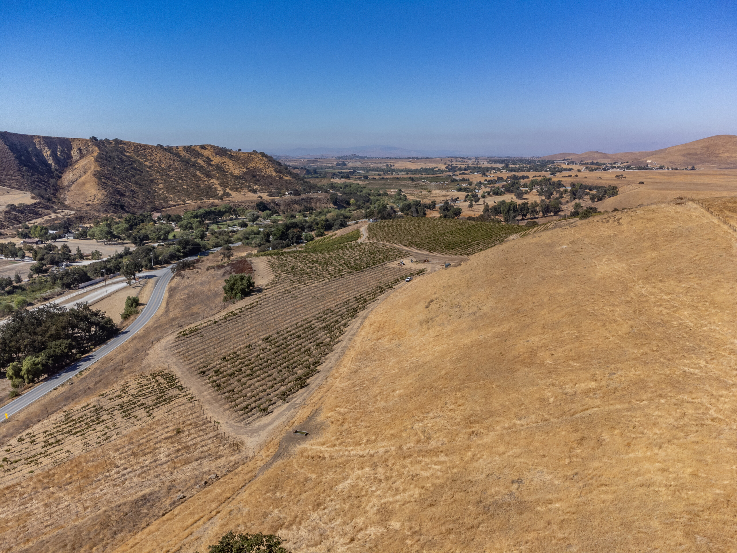 This property is located in beautiful San Benito County and consists of two legal parcels totaling approximately 120.35 acres. Parcel 1 is approximately 73.06 acres, and Parcel 2 is approximately 47.29 acres. The acreage features a blend of flat, rolling, and hillside terrain, with stunning views of the valley and nearby mountains. Approximately 28 acres are planted with a variety of certified organic vineyards; however, the vineyard is not currently being commercial operated or harvested. There are three wells on the property, providing a valuable water resource. Access is available via an easement. This is a great opportunity to share with a partner or family memberbuild your dream homes, farm, raise animals, and maintain the vineyard, or remove the vineyard if desired and enjoy private country living in a beautiful setting. Vineyard removal is negotiable; sellers may consider a credit to the buyer at the close of escrow towards the Buyers vineyard removal costs. There is no income from the cell tower on the property. APN: 022-160-055, APN: 022-160-054