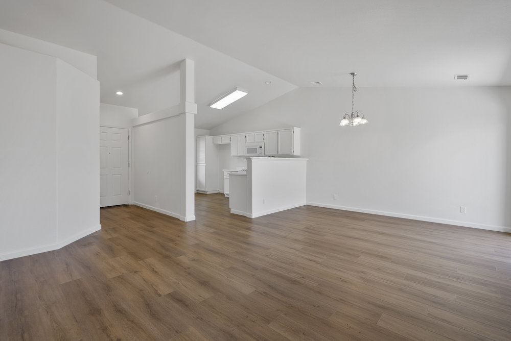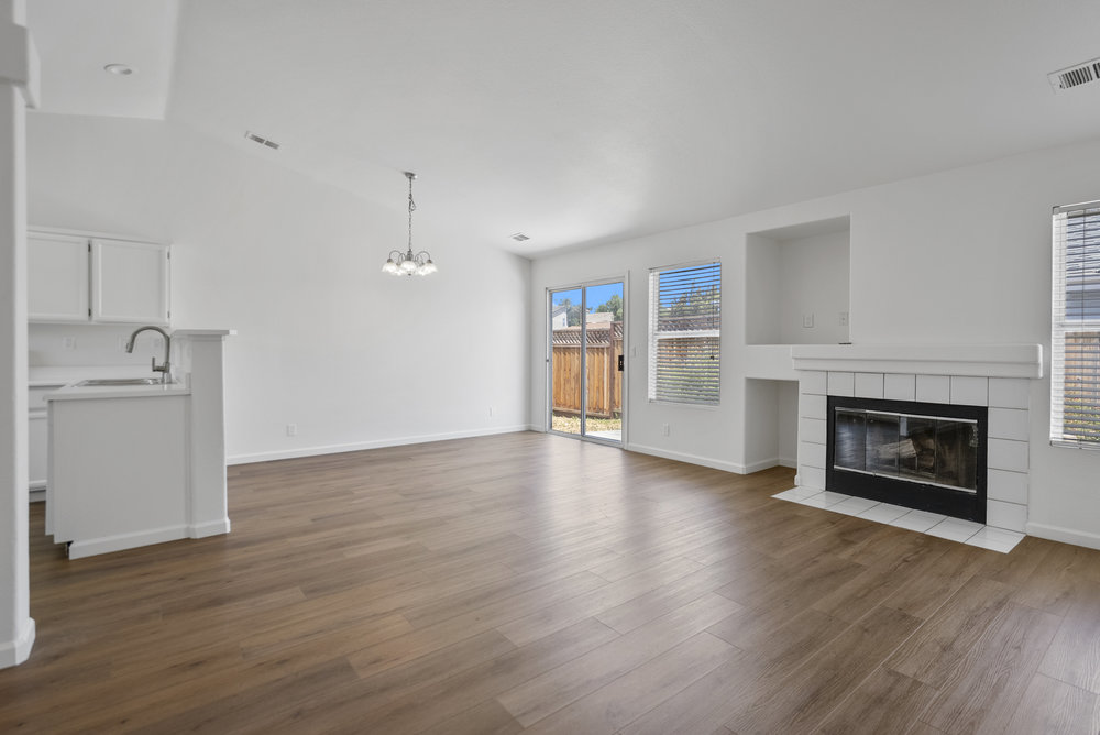 Move in ready single-story on an 8,000-sq-ft lot! Fresh interior paint, brand-new wide-plank floors, vaulted great room with fireplace, and an open kitchen with crisp white cabinets. Four bedrooms, two baths, attached two-car garage, and a spacious backyard with paver patio ready for summer BBQs—all minutes from schools, shopping, and Hwy 25.